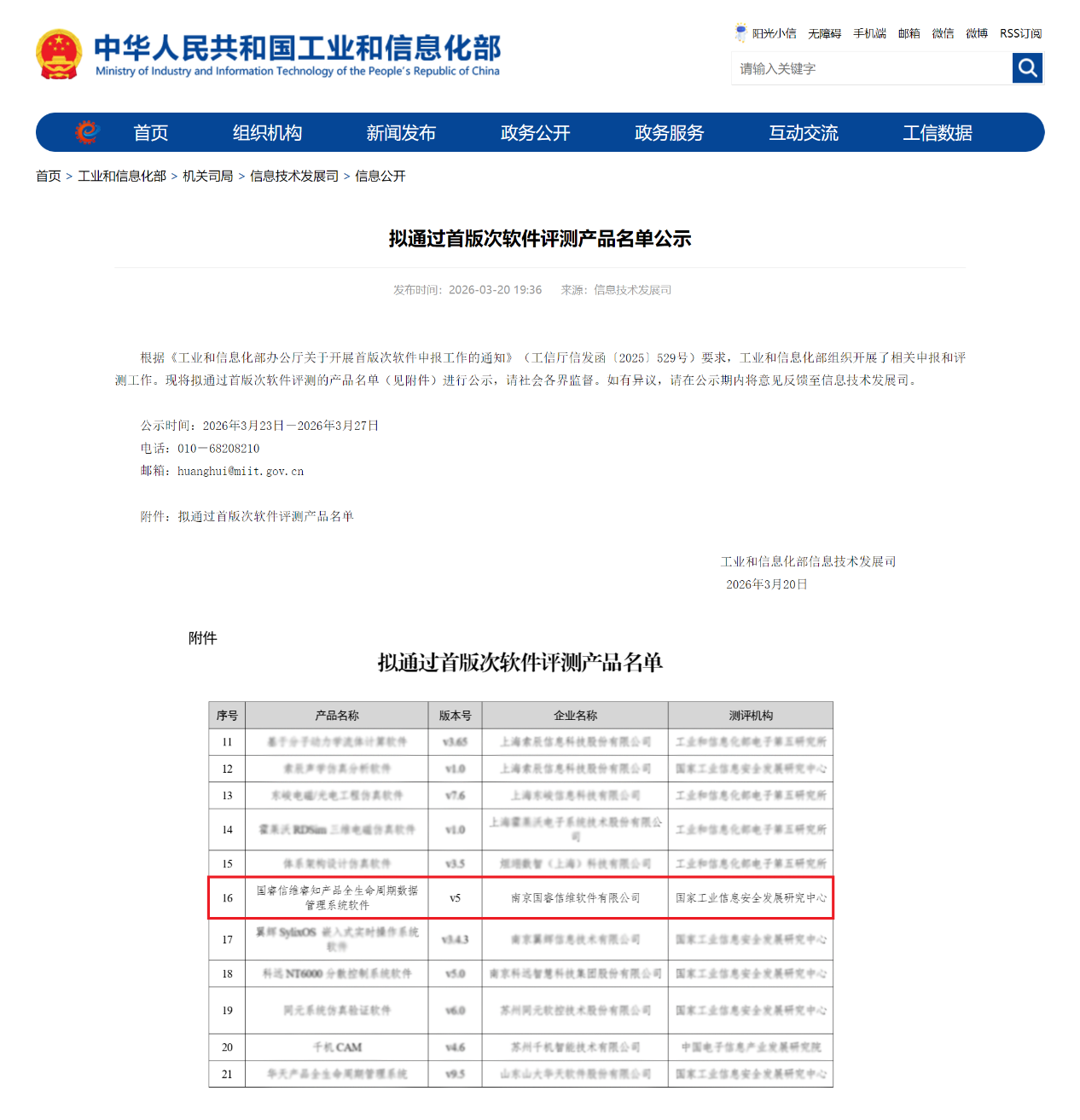 近日,工业和信息化部信息技术发展司公布“拟通过首版次软件评测产品名单”,南京国睿信维软件有限公司自主研发的(以下简称“国睿信维”)睿知产品全生命周期数据管理系统软件产品(REACH.PLM),成功通过首版次软件评测,正式入选工信部首版次软件评测名录。
